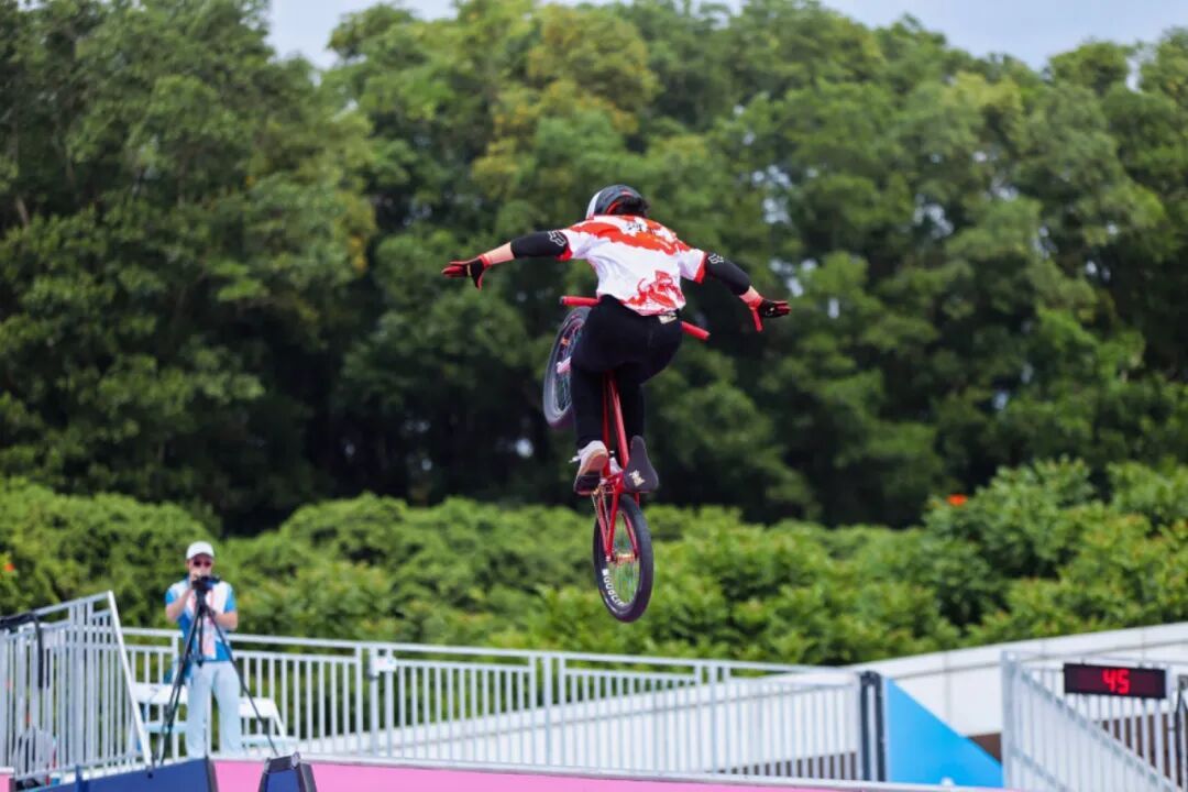 作为十五运会自行车项目首个开赛的竞技类项目,本场赛事上演了“空中翻转、甩尾腾跃”的高燃对决,诞生了深圳赛区竞技类项目首金,河北选手孙思蓓以94.30分摘得女子自由式公园赛冠军,广东选手范晓桐以92.40分斩获银牌,她的队友雷珊珊则以92.20分获得铜牌。